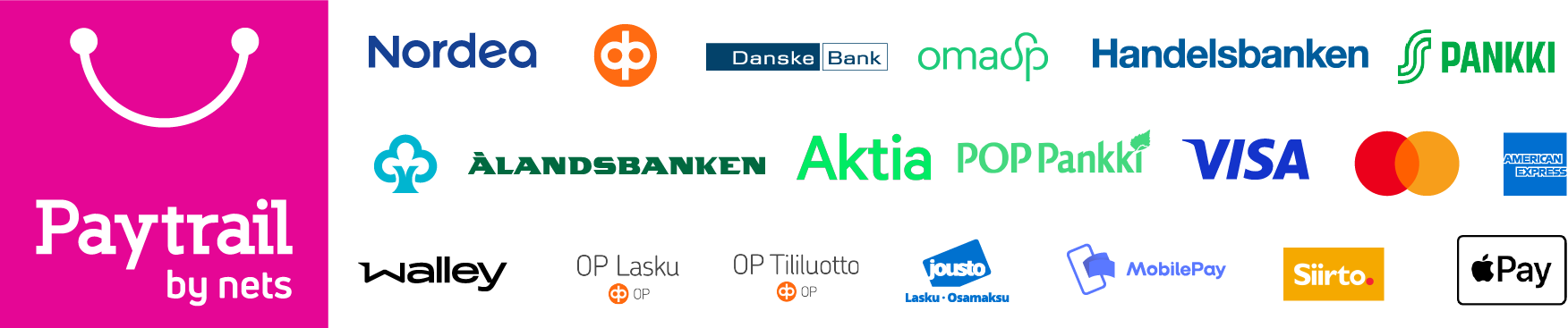 Voit tilata tuotteet laskulla, maksaa ostoksesi turvallisesti verkkopankistasi tai käyttää uusimpia maksutapoja kuten MobilePay.